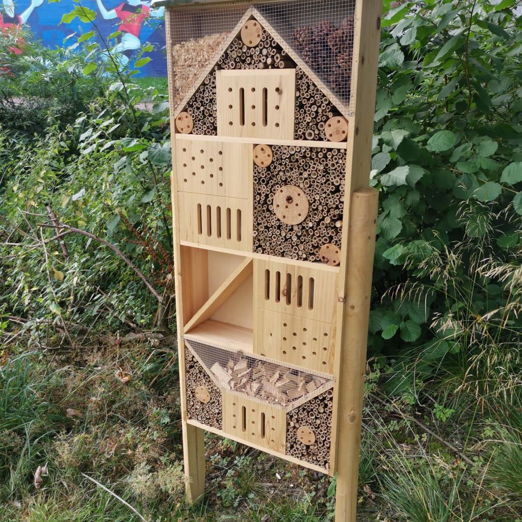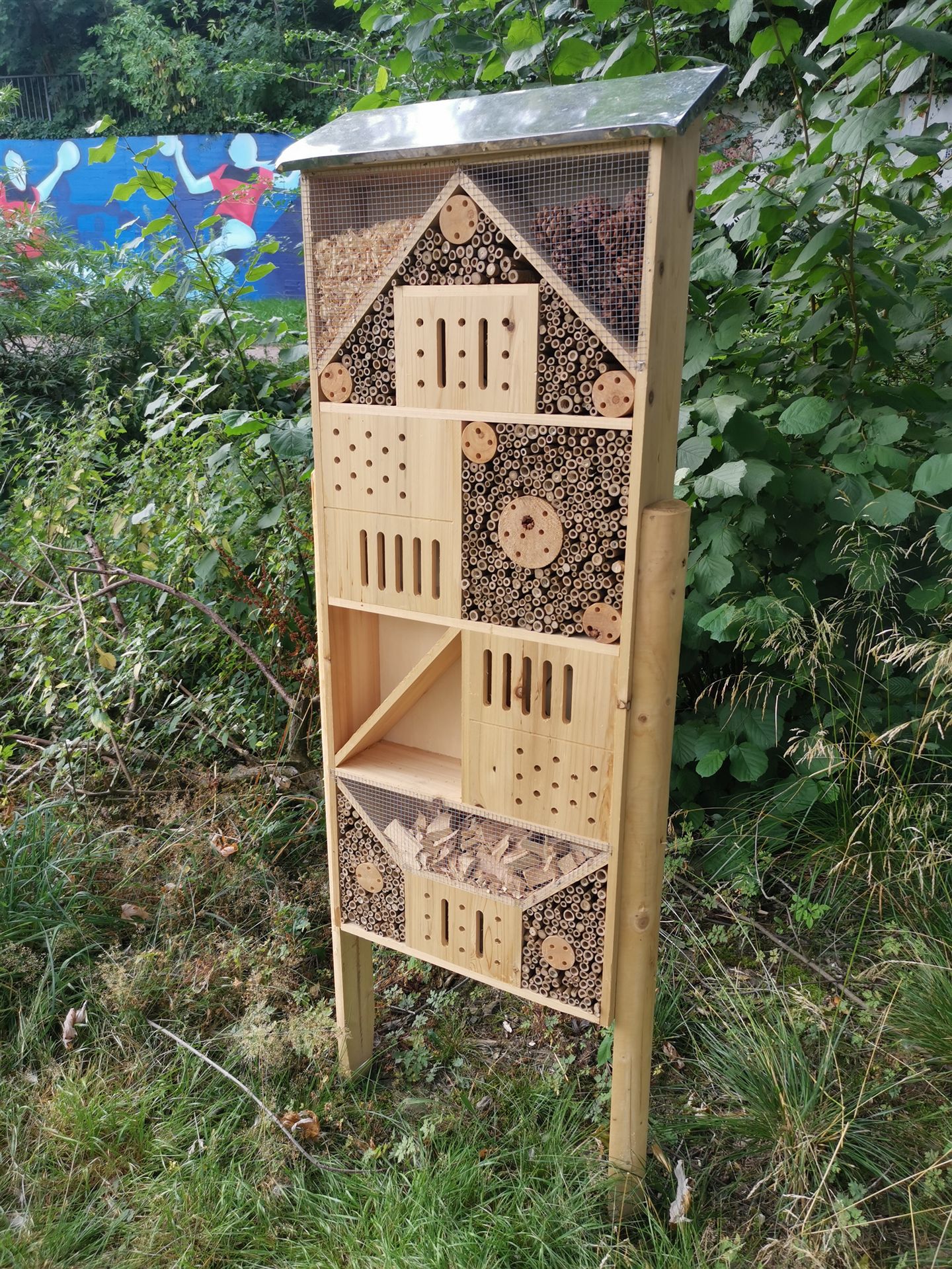 Anschaffung und Anbringung von 10 Insektenhotels – mittlerweile hat sich die Naturlandschaft durch den intensiven menschlichen Eingriff so sehr verändert, dass nur noch wenige natürliche Lebensräume für Insekten vorhanden sind. Das Artensterben und insbesondere das Insektensterben sind mittlerweile ein viel diskutierter Bereich im öffentlichen Leben. Allenthalben wird über Bepflanzung von Grünflächen mit Wildblumensamen nachgedacht und dies auch zum Glück bereits umgesetzt. Auch (D)ein Euro Für Hückeswagen e. V. möchte mit diesem Projektvorschlag seinen Beitrag hierzu leisten.